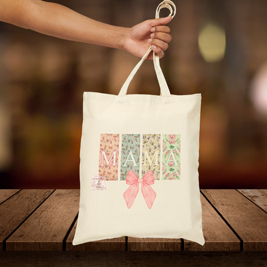Floral "MAMA" Cotton Canvas Tote Bag - Perfect for Moms and Gift Giving