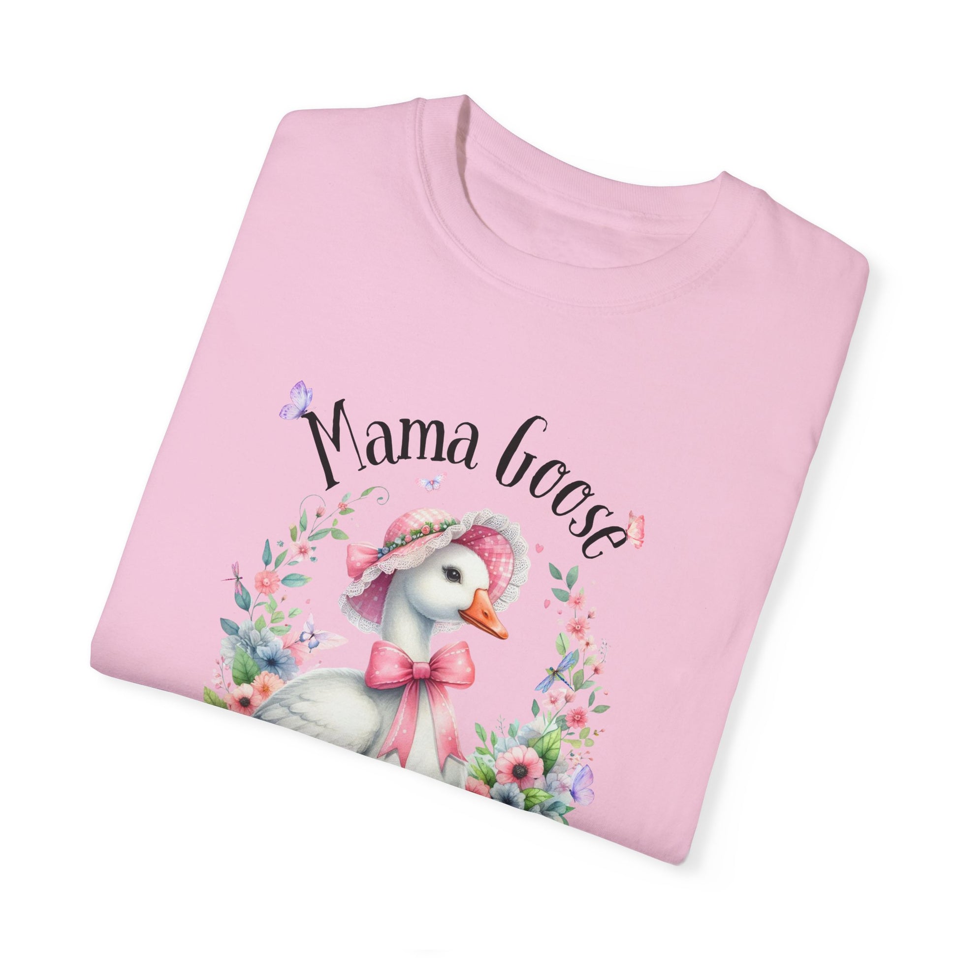 This Mama Goose T-shirt features a sweet Mama goose with wildflowers and butterflies, making it perfect for Mother's Day or any day to show appreciation for a mom. The relaxed fit and soft fabric make it comfortable for casual or semi-formal settings, while the classic crew neckline allows for easy accessorizing. This unisex garment-dyed T-shirt is ideal for adults and is available in multiple sizes and colors to suit any style.