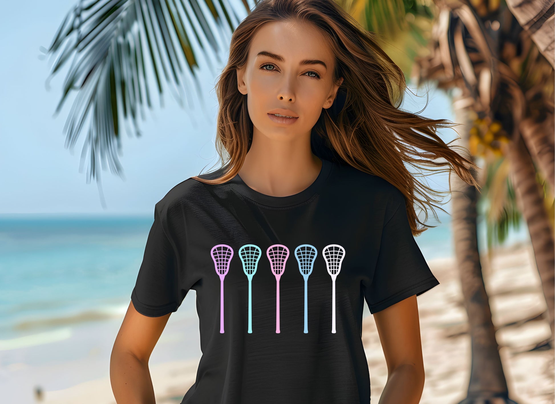 This T-shirt features a design of 5 Lacrosse Sticks in Pastel colors, perfect for Lacrosse Love and Girls Lacrosse Players. The soft colors give off a sporty and fun vibe, making it ideal for lacrosse enthusiasts. It's great for casual wear or showing team spirit during games and practices. Perfect for lacrosse players, fans, and supporters, this T-shirt is fitting for lacrosse games, tournaments, practices, and casual outings.